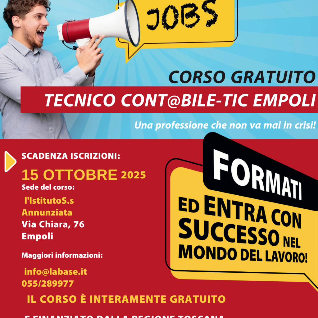 Il corso è interamente gratuito, in quanto finanziato con le risorse del POR FSE TOSCANA 2021-2027 e rientra nell’ambito di Giovanisì (www.giovanisi.it), il progetto della Regione Toscana per l’autonomia dei giovani